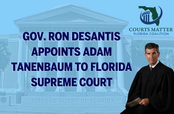 Today, Governor Ron DeSantis selected Adam Tanenbaum to serve on the Florida Supreme Court, filling the vacancy created by Justice Charles Canady who left his seat to become the new Director of The Hamilton School at the University of Florida.